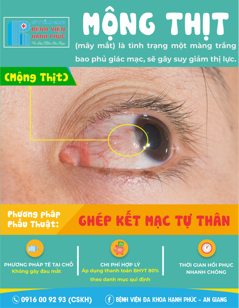 Theo BS.CKI Nguyễn Văn Luận – Trưởng Khoa Mắt - Bệnh Viện Đa Khoa Hạnh Phúc chia sẻ phẫu thuật mộng thịt – mây mắt chẳng còn đáng ngại khi áp dụng phương pháp phẫu thuật “Ghép kết mạc tự thân“ với nhiều ưu điểm vượt trội:
