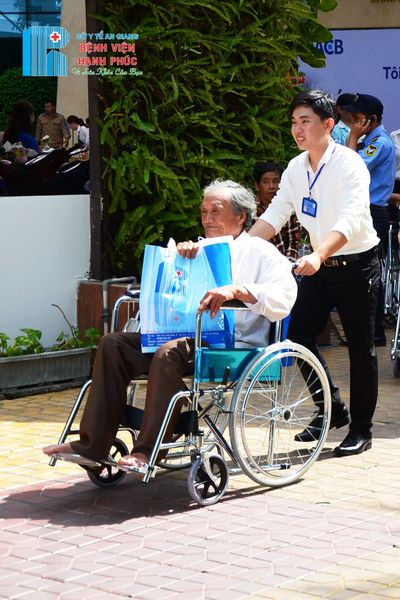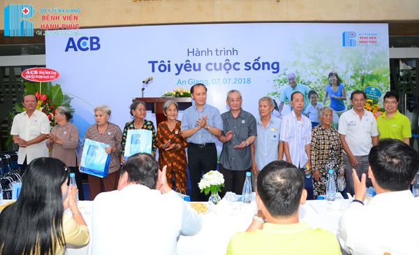 Ảnh chương trình "Hành trình tôi yêu cuộc sống" Bệnh Viện Đa Khoa Hạnh Phúc - An Giang và Ngân Hàng ACB tổ chức nhằm trao tặng 15 xe lăn và 75 phần quà đến các gia đình chính sách